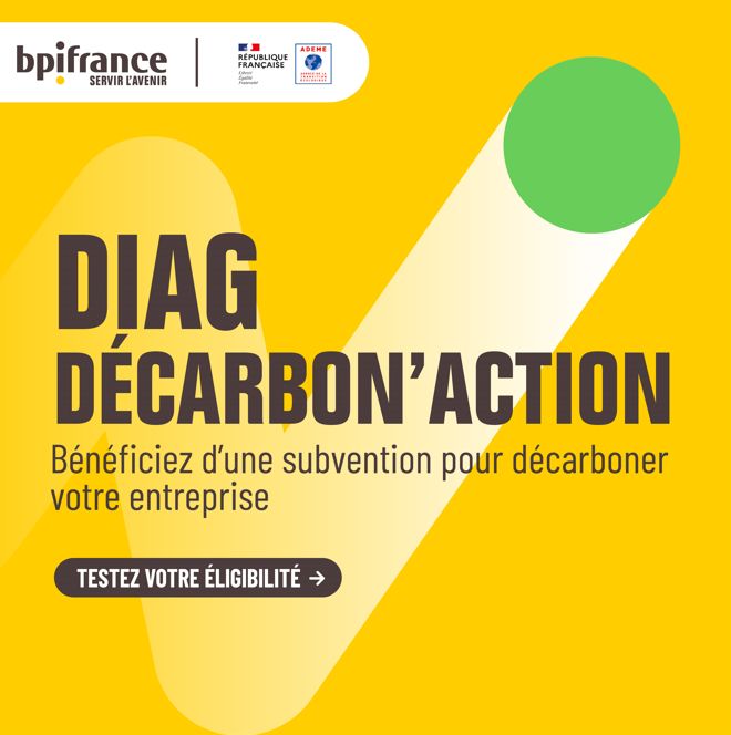 L’ADEME et la BPI ont standardisé les offres pour la réalisation d’un premier Bilan Carbone® destiné aux PME, fixant leur valeur à 10 000€ HT. Grâce à la subvention Diag Décarbon’Action, les entreprise éligibles bénéficient d’une prise en charge de 40%, réduisant leur reste à charge à 6 000€ HT. Ces prestations comprennent un accompagnement complet, ainsi que la mise à disposition de supports de communication pour valoriser la démarche.