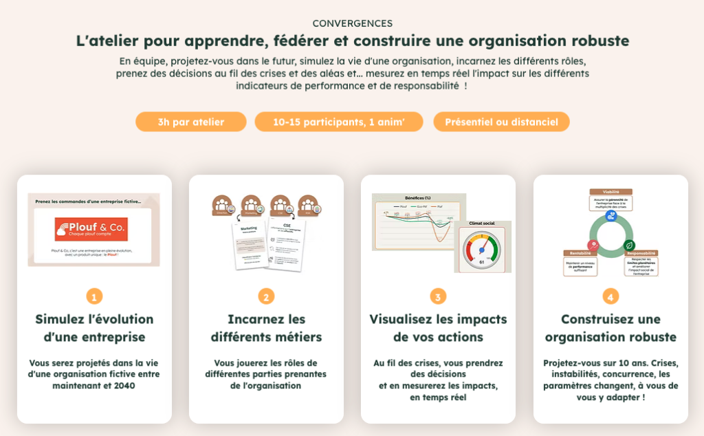 Convergences est business game immersif qui explore comment faire converger rentabilité, responsabilité sociétale et pérennité des entreprises dans un contexte instable.